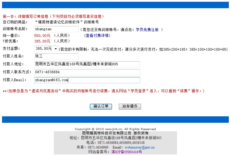 第一步:點(diǎn)擊網(wǎng)上在線支付進(jìn)入下面網(wǎng)頁(yè),請(qǐng)認(rèn)真填寫訂單信息;