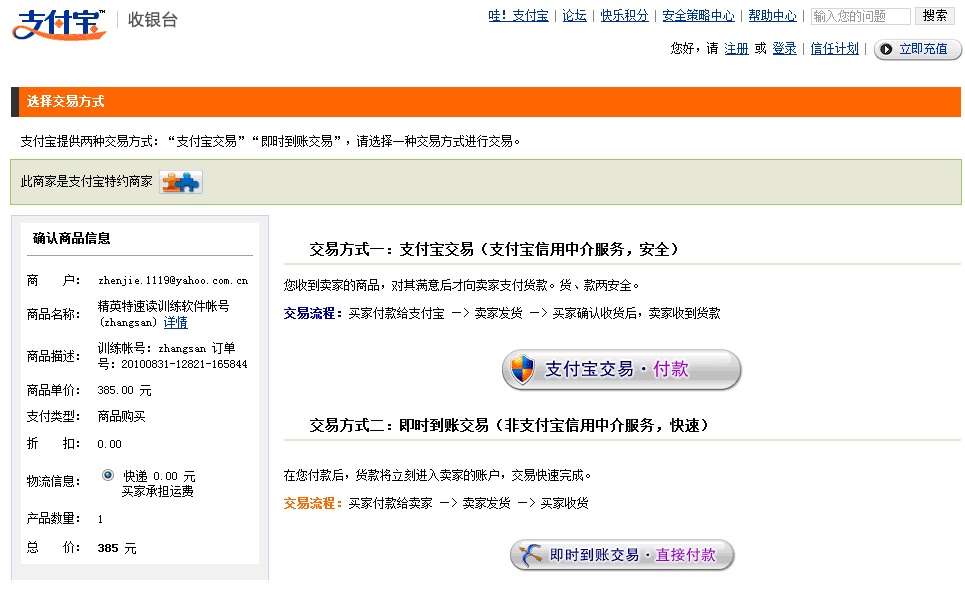 如果你選擇“支付寶”支付,則進(jìn)入下面的網(wǎng)頁(yè),請(qǐng)用自己的支付寶進(jìn)行支付;